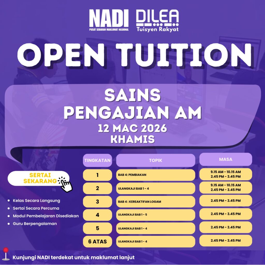 Jom sertai Open Tuition bersama NADI DILEA Tuisyen Rakyat! 🚀