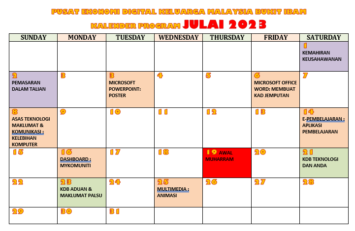 JADUAL AKTIVITI JULAI 2018
